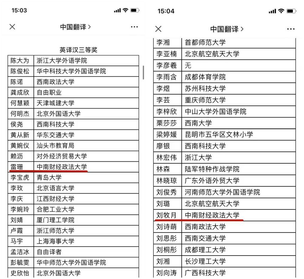 一直以来,在学院的大力支持和老师们的悉心指导下,外院学子在韩素音国际翻译大赛中不断获得好成绩,近年来已有多名研究生在该项大赛中取得佳绩。雷珊、刘牧月两位同学此次获奖充分体现了外国语学院学科的专业优势和教学能力,提升了我院在业内的影响力。
