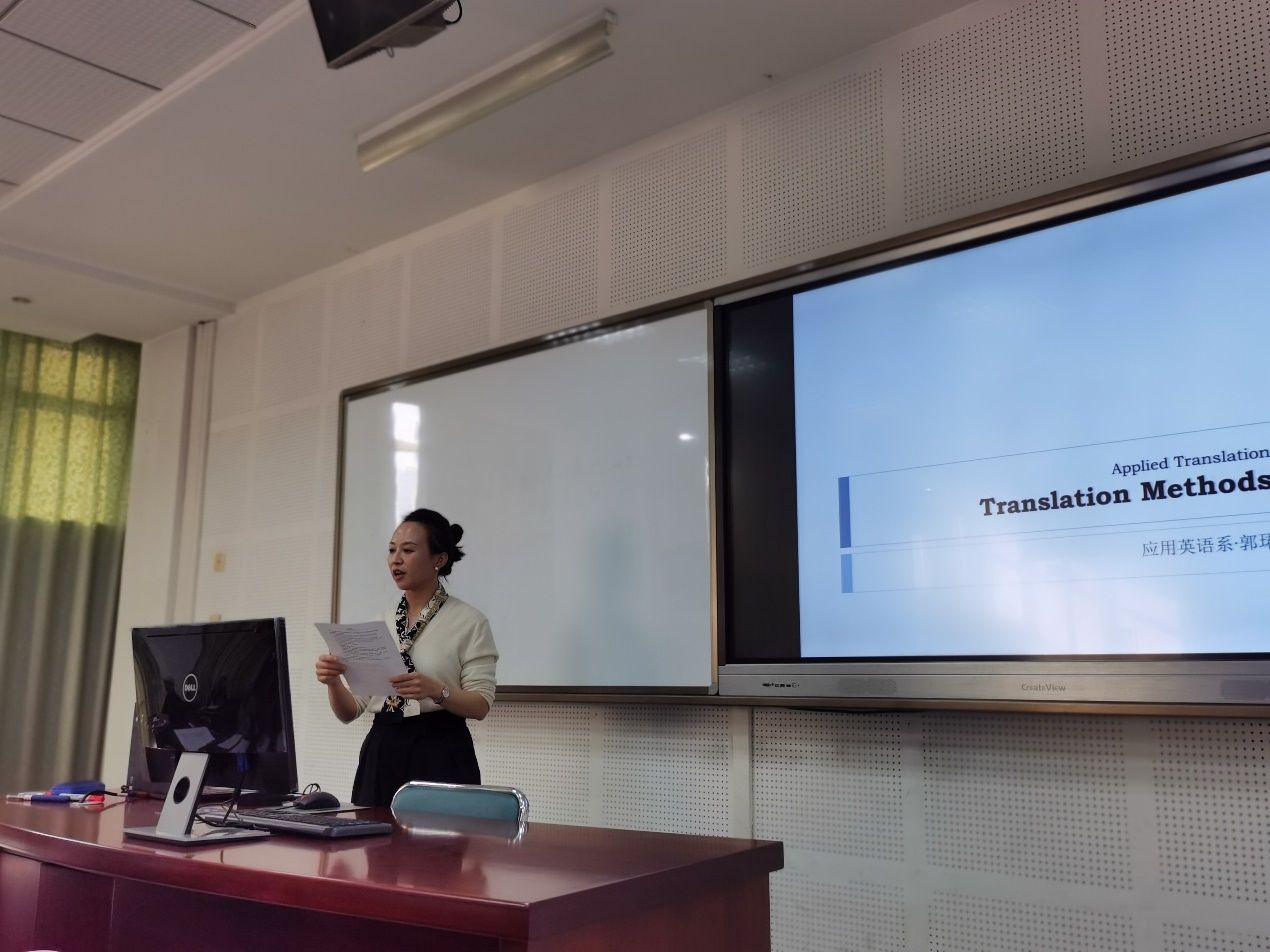 六号参赛选手郭珺阐述了在翻译过程中要综合使用多种方法,用汉字和拼音来使句子更加忠于原文,最后进行了课堂总结和随堂测验。