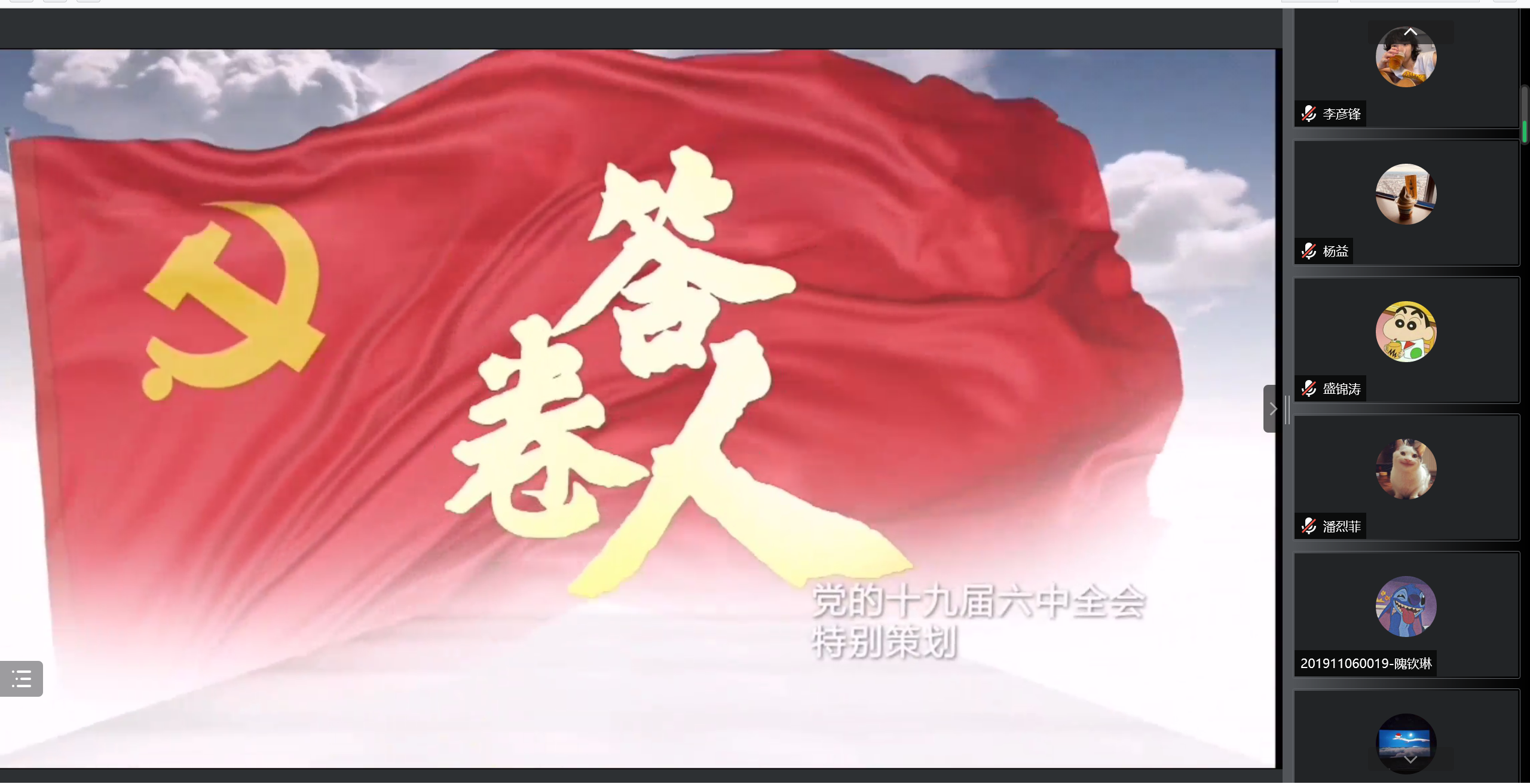 最后,全体党员同志共同探讨了“党的十八大以来,党中央就为什么建设人才强国、什么是人才强国、怎样建设人才强国的重大理论和实践问题,提出了哪些新理念新战略新举措?”以及“为什么说江山就是人民、人民就是江山,打江山、守江山守的是人民的心?”这两个问题,并观看了为党的十九届六中全会特别策划的一段视频,回顾了中国共产党人如何向党和人民交出一份优异答卷的艰难历程,激励了全体党员同志继续在新时代继续砥砺前行,最终本次支部主题党日活动在全体党员同志的踊跃发言和积极配合下取得圆满落