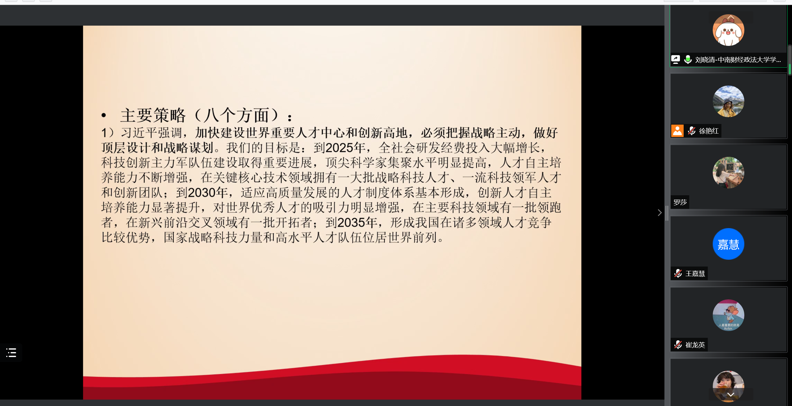 接着,全体党员同志共同学习了习近平在中央人才工作会议上的讲话精神,从习近平总书记关于新时代人才强国战略的总方针和主要策略等方面,深入领悟了习近平总书记强调的深入实施新时代人才强国战略加快建设世界重要人才中心和创新高地讲话的主要精神。