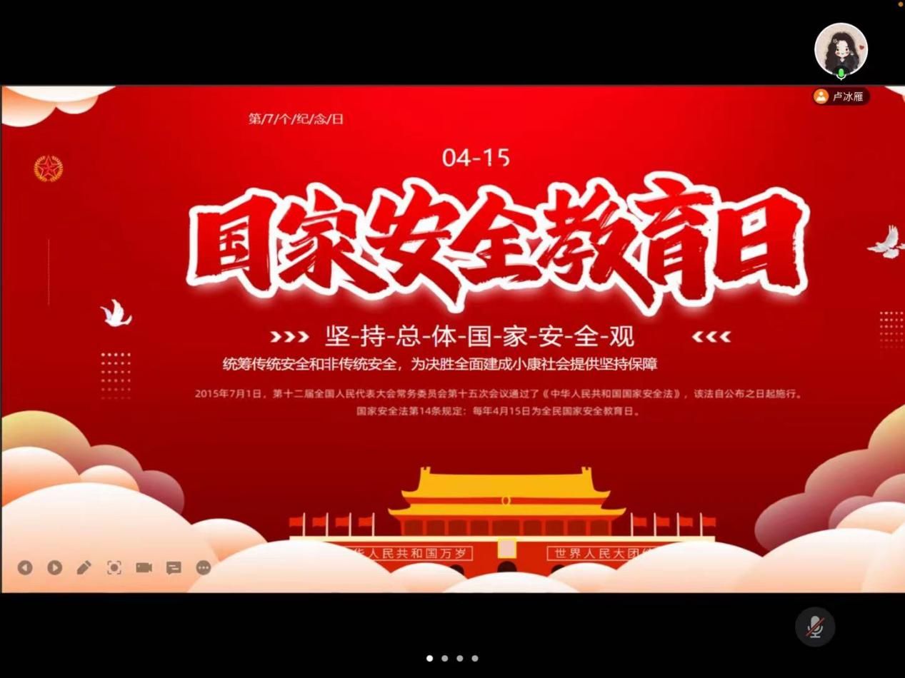 院网讯(通讯员 卢冰雁)2022年4月15日是第7个全民国家安全教育日。为深入贯彻落实上级有关文件精神,4月14日晚,外国语学院2020级研究生党支部开展主题为“奋进“十四五” 建功“双一流”——深入学习贯彻习近平总书记关于总体国家安全观的重要论述精神”的主题党日活动。活动由2020级研究生党支部书记卢冰雁主持,支部全体党员参加学习活动,认真学习和领会相关精神。