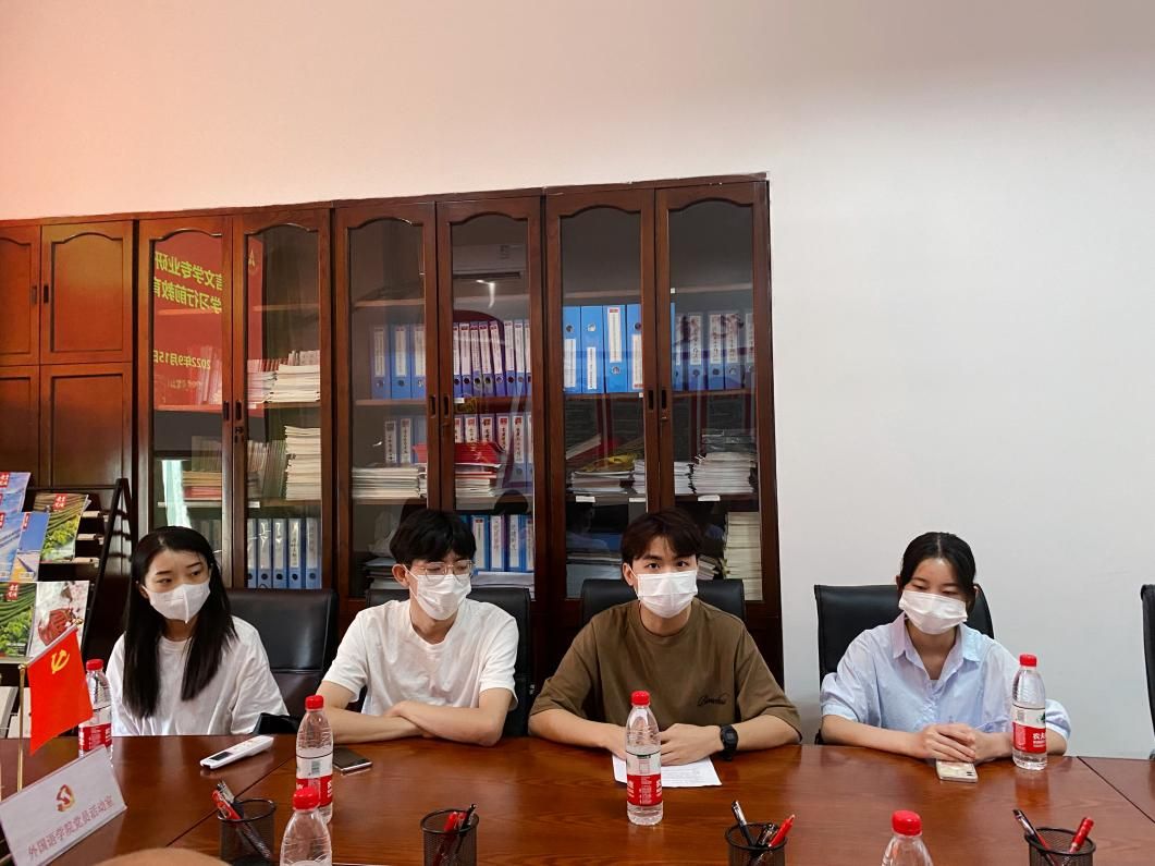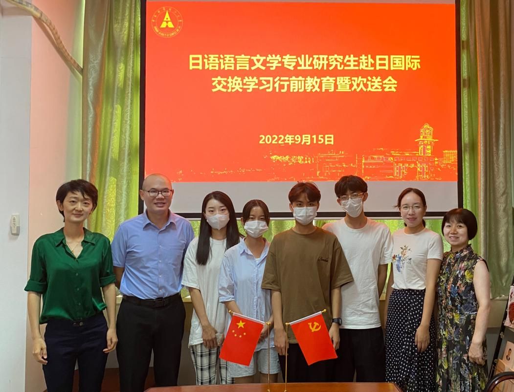院网讯(通讯员 张冉)9月15日下午,学院在文波楼419会议室召开了2022年研究生赴日交流行前教育暨欢送会。学院党委书记陈亚奇、副书记王芹、日语系主任袁园、日语语言文学导师周新平、研究生辅导员张冉和2021级日语语言文学专业赴日研究生参会。