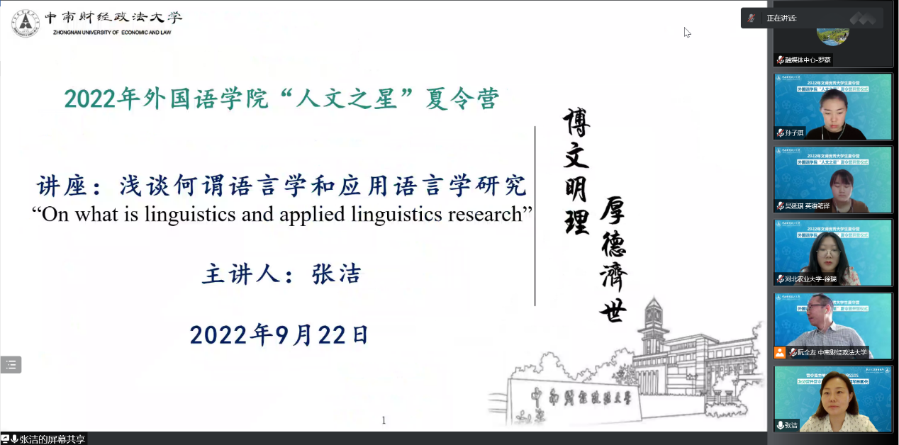 本次夏令营活动为来自全国高校的优秀学子搭建了高效的交流平台,让营员们在“云端”也能够领略中南大外国语学院的深厚底蕴,同时一睹名师学者风采,了解学科前沿研究,从而激发科研兴趣。本次夏令营也进一步提升了学院影响力,为2023年的硕士研究生招生工作引航助力。