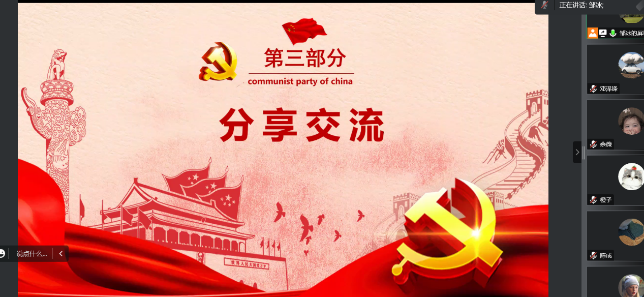 会上,邹冰带领支部全体党员重温了入党誓词,与会人员通过轮流诵读二十大报告原文、分享学习二十大报告心得体会等方式开展主题党日活动。