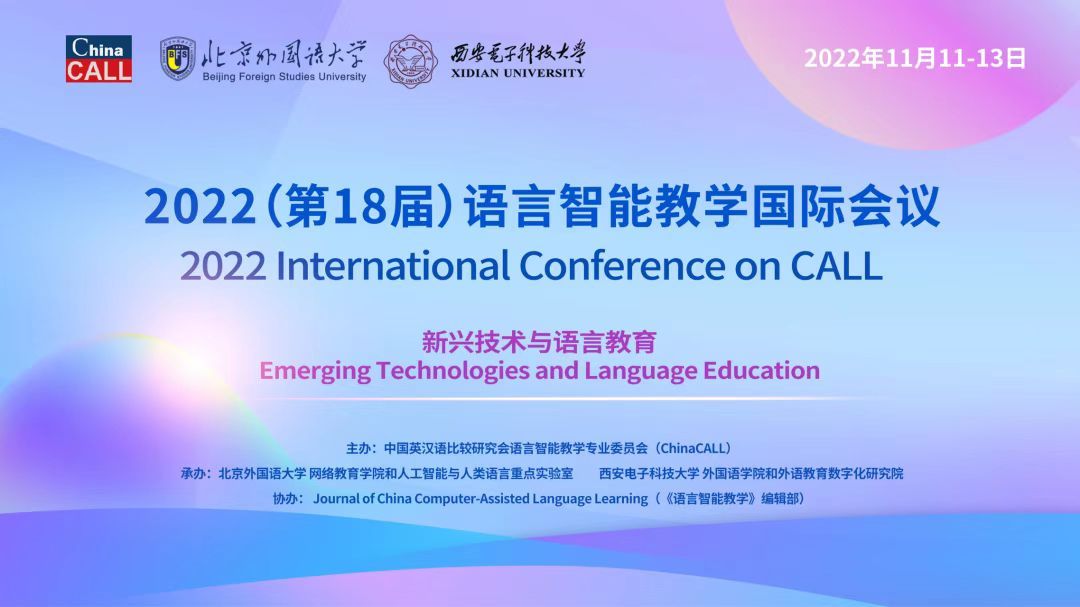 2022年11月11-13日,“2022(第18届)语言智能教学国际会议”成功举办。会议由中国英汉语比较研究会语言智能教学专业委员会(ChinaCALL)主办,北京外国语大学网络教育学院和人工智能与人类语言重点实验室、西安电子科技大学外国语学院和外语教育数字化研究院联合承办,《语言智能教学(英文)》国际期刊编辑部协办。大会主题为新兴技术与语言教育(Emerging Technologies and Language Education)。在阮全友教授的指导下,2022级外国语言学及应用语言学研究生罗蒙参与了此次国际学术会议,并在分会场作学术报告。
