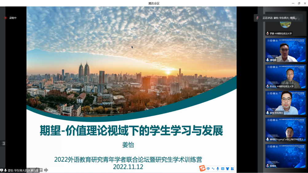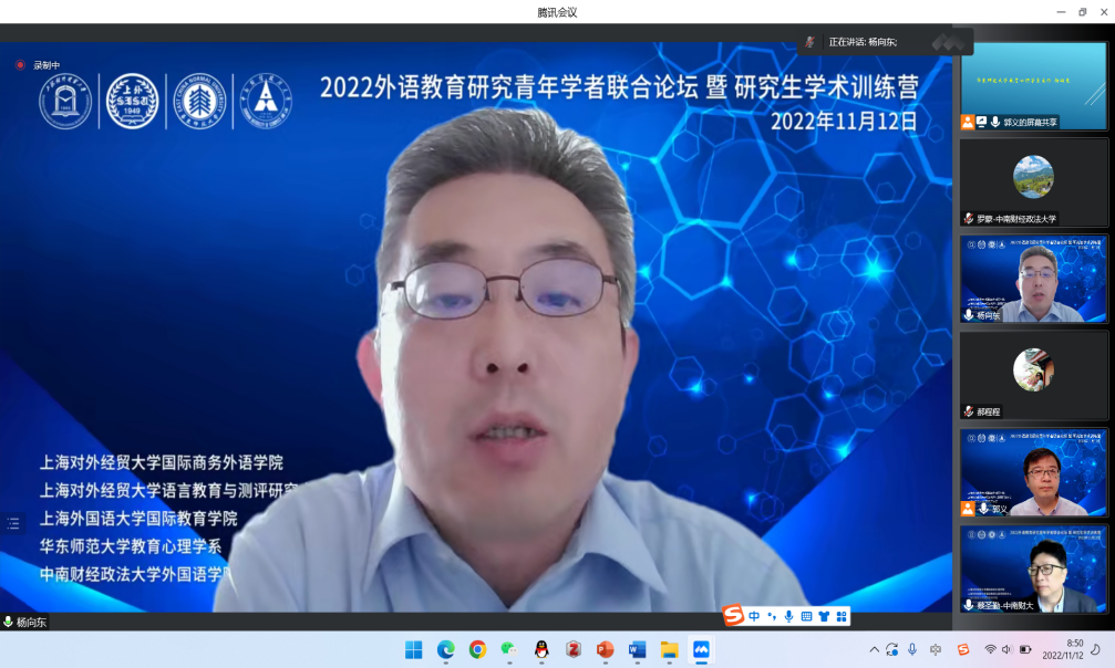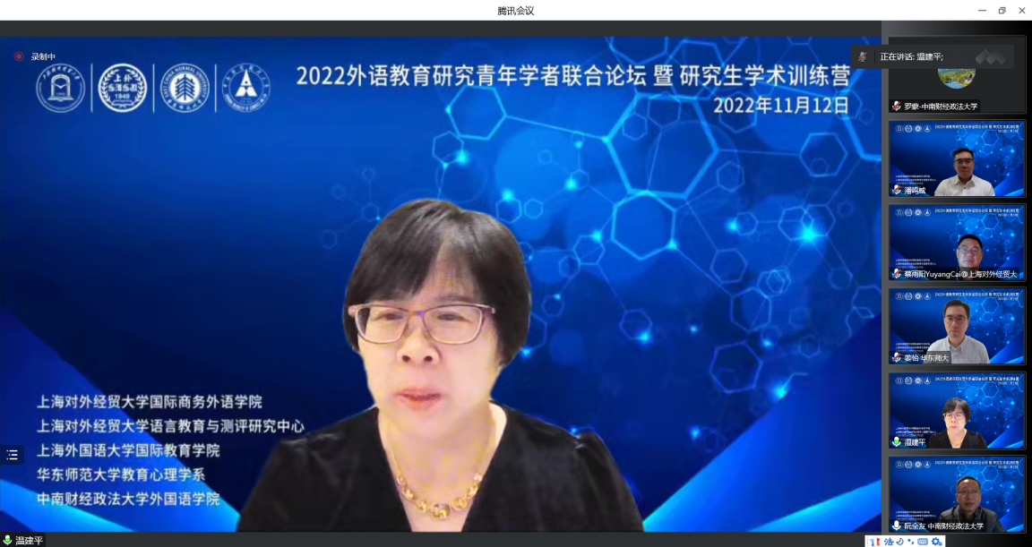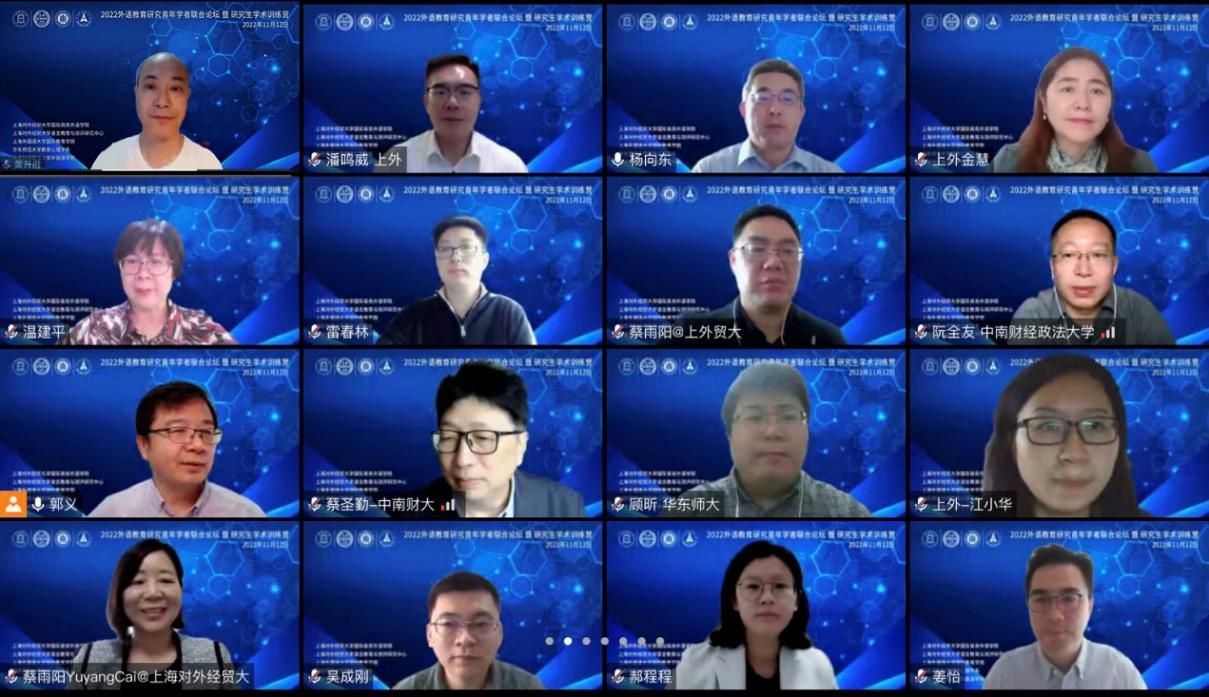 (通讯员:罗蒙)11月12日,“2022外语教育研究青年学者联合论坛暨研究生学术训练营”以云端形式举办。本次活动由米兰电竞·(中国区)外国语学院与上海对外经贸大学国际商务外语学院、上海对外经贸大学语言教育与测评研究中心、上海外国语大学国际教育学院和华东师范大学教育心理学系共同主办,吸引了来自全国各大高校的200余名专家学者及研究生参加。