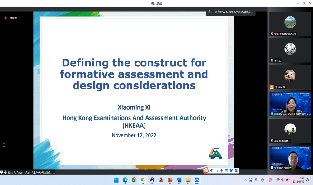 随后,上海对外经贸大学蔡雨阳教授主持上午的主旨报告环节,中国香港考试及评核局(HKEAA)考试、评核及研究总监席小明博士作题为《Defining the construct for formative assessment and design considerations》的主旨发言;上海外国语大学潘鸣威教授主持下午的主旨报告环节,上海市高层次人才、华东师范大学教育心理学系副主任姜怡以《期望-价值理论视域下的学生学习与发展》为题作主旨发言。与会学者同主旨发言人提问探讨,会场学术气氛浓厚。