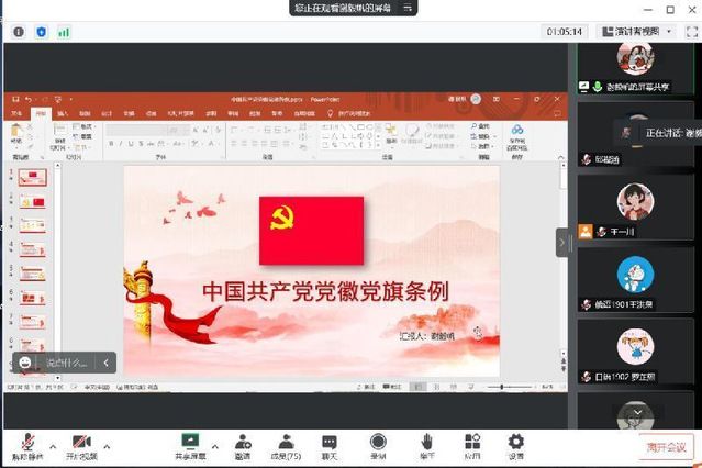 最后,由谢毅帆同志领学《中国共产党党徽党旗条例》。《条例》的制定和实施,对于充分发挥党徽党旗的政治功能,增强党的凝聚力、战斗力,激发党员党的意识,激励全党不忘初心、牢记使命,坚定理想信念,团结带领全国各族人民在党的旗帜下奋勇前进,具有十分重要的意义。