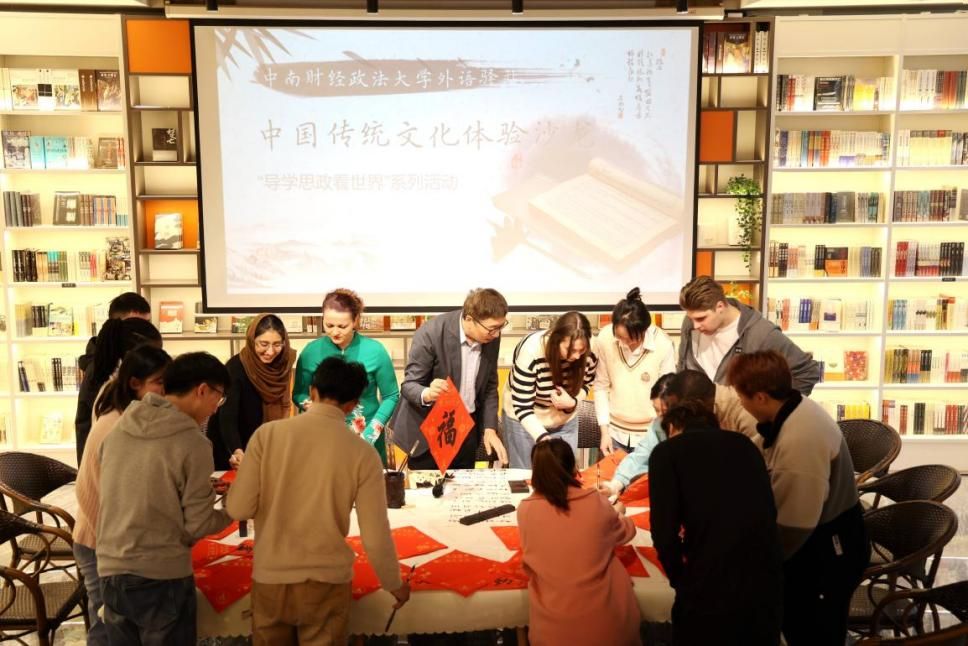 (通讯员 黎佳 周岭)“遥知不是雪,为有暗香来,这句古诗描写的是什么花?”2月28日上午9时,环湖倍阅书店传来朗朗书声,外国语学院与国际教育学院联合举办了“导学思政同向行”——中国传统文化体验沙龙。本次沙龙邀请了外国语学院院长蔡圣勤教授主讲,中外研究生积极报名参加。外国语学院党委副书记王芹、国际教育学院副院长汪正君、外籍教师代表和两院辅导员参与本次沙龙。