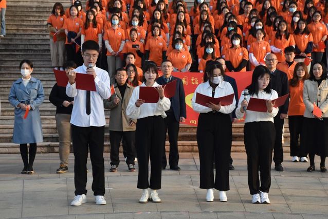 作为学习雷锋、志愿服务先进榜样,2020级研究生鲜于乐洋和2020级本科生左婷发表在国旗下的讲话。鲜于乐洋讲述自己在甘肃省酒泉市肃州中学支教和深入基层开展集中宣讲的青春故事。从多位一体的“金泉计划”系列志愿活动到“大手牵小手”之书信领航工程、从“七彩周末”支教活动、到“金马计划”大讲堂活动,大大小小的志愿活动中都有着她的身影。左婷分享她在人民医院做志愿者和参与“大学生志愿服务西部计划美丽中国支教专项”活动的经历,提出要发挥外语专业特长进行志愿活动,号召广大青年大学生将“小我”融入“大我”,以实际行动续写新时代的雷锋故事!