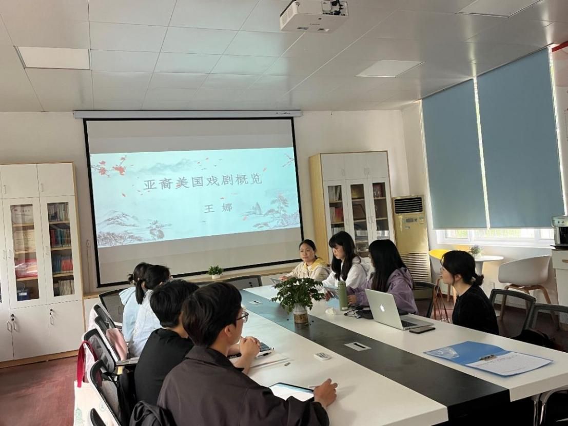 (通讯员 杨佳昕)2023年5月11日下午,外国语学院举办了主题为“亚裔美国文学戏剧”的导学学术下午茶活动。本次活动在语思导学育人空间201会议室进行,邀请了英语语言文学导师组王娜副教授进行指导,2022级英语语言文学专业研究生和部分本科生参与活动。