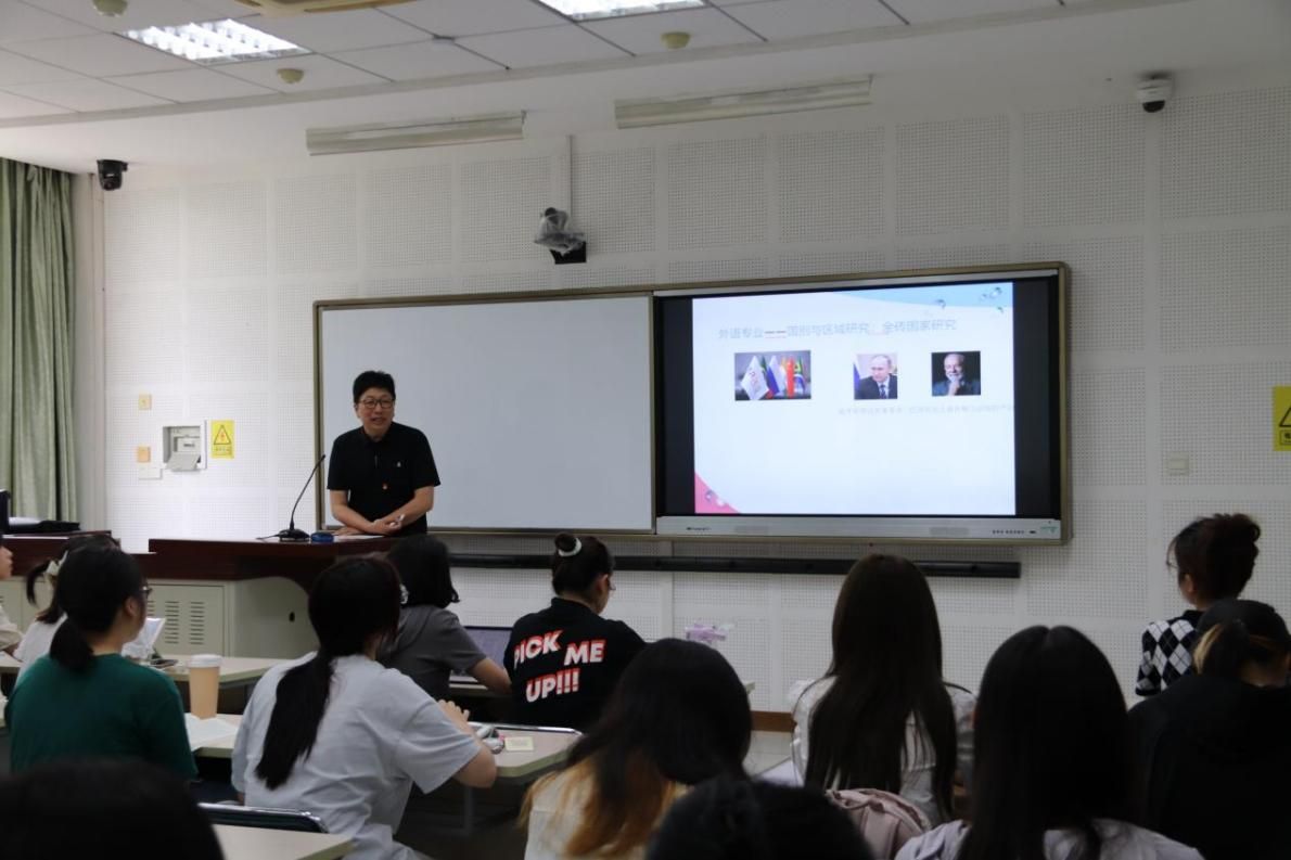 院网讯(通讯员 杨敏)为推进学习贯彻习近平新时代中国特色社会主义思想主题教育走深走实,进一步深化思想政治理论课改革创新,扎实推进习近平新时代中国特色社会主义思想和党的二十大精神进教材、进课堂、进头脑,外国语学院积极响应学校“同上一门思政课”活动的号召。6月2日上午,外国语学院院长蔡圣勤和学院党委书记陈亚奇共同讲授一堂启智润心的思政课,学院30余名本科生入党积极分子,学生党员,学院副院长袁奇,院党委副书记余向阳参加学习。