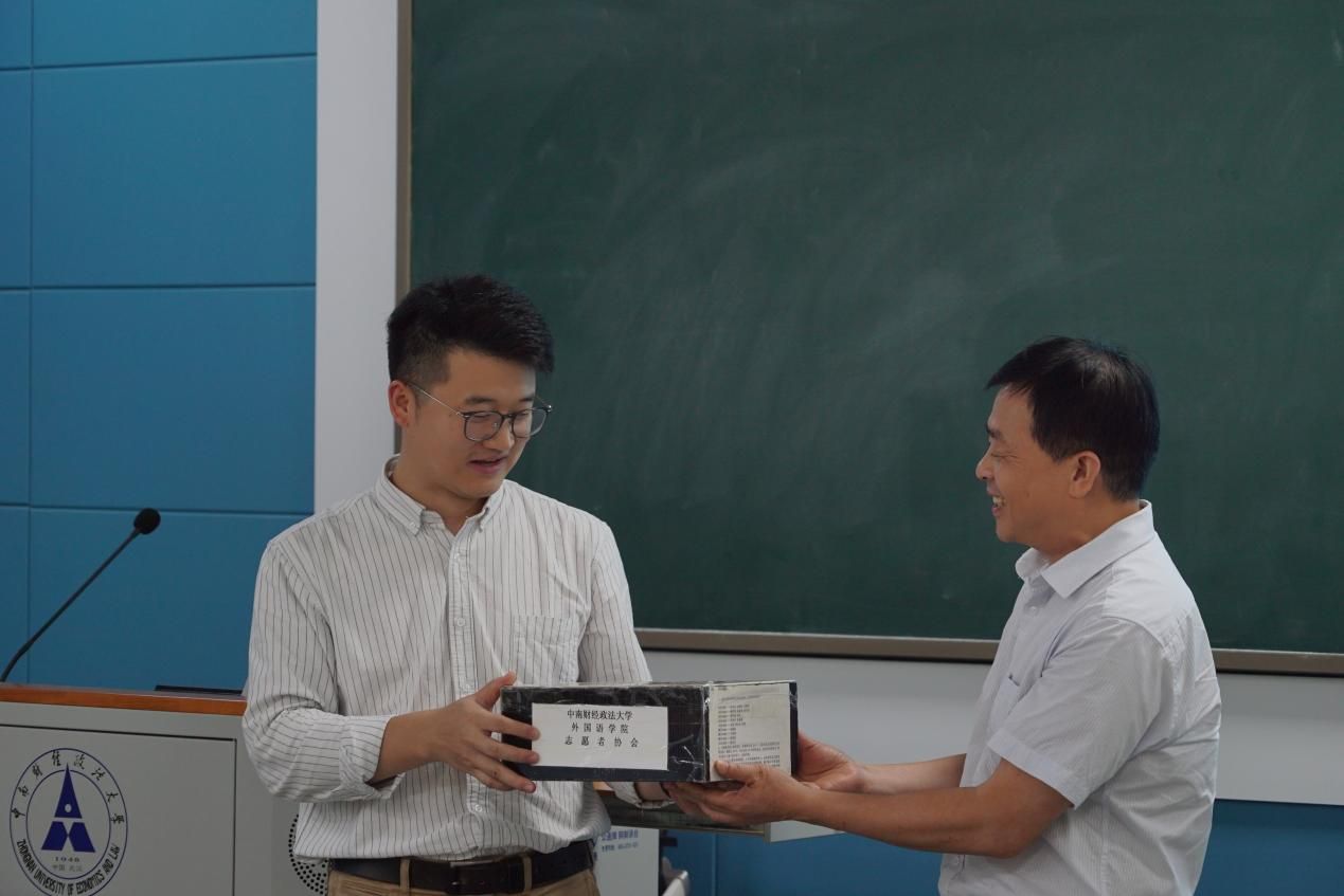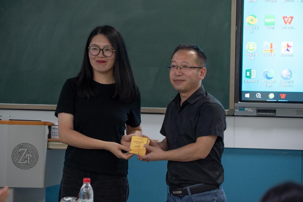 余向阳向校友赠送学院定制的纪念U盘和精美书签。