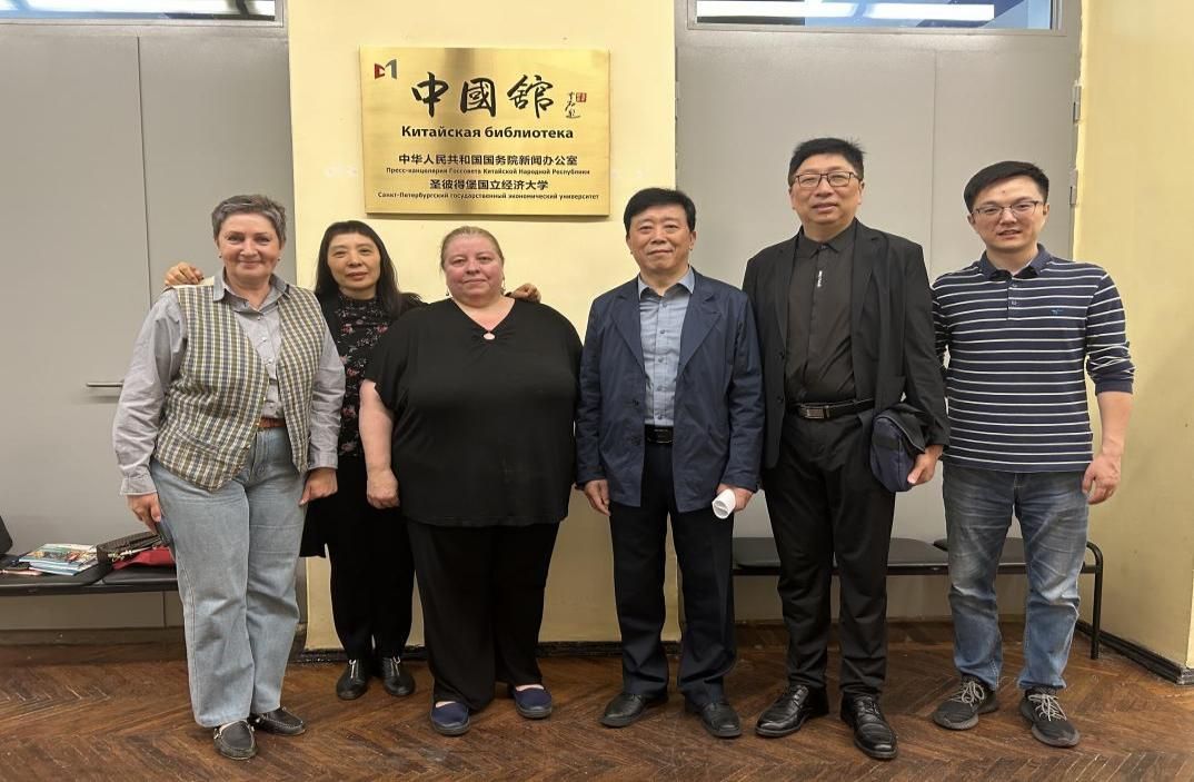 6月25日,代表团赴圣彼得堡国立经济大学访问,与中俄经济类大学联盟俄方秘书长塔季扬娜·乌尔茹姆采娃(Татьяна Уржумцева)教授,《习近平谈治国理政》第一卷俄文版译者奥尔加·米古诺娃(Ольга Мигунова)教授、圣彼得堡国立经济大学中国与亚太中心副主任阿纳斯塔西娅·科瓦廖娃(Анастасия Ковалева)等知名汉学家进行座谈。在交谈中,申祖武表示我校与圣彼得堡国立经济大学有稳固的合作基础,在学生互派、教师访学、科研合作方面成果显著。圣彼得堡国立经济大学不仅委派专家参与了我校教师主持的国家社科基金中华学术外译项目,还资助出版我校教师出版了曾被作为国礼赠送给中俄两国领导人的文学译著。他强调,两校的合作前景广阔,潜力巨大,希望未来在本硕联合培养等更多领域拓宽和深化合作。