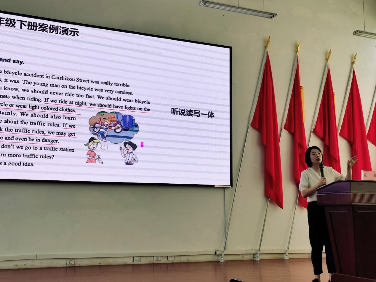 张琦的报告题为《帮助学生更快记单词及课堂听口策略》,提出要“上好第一课”,分析班级管理、学生管理的重要性,并以自己上课、准备教学比赛的实际例子向现场的盐津中学教师们展示实用性很强的课堂实操方法。