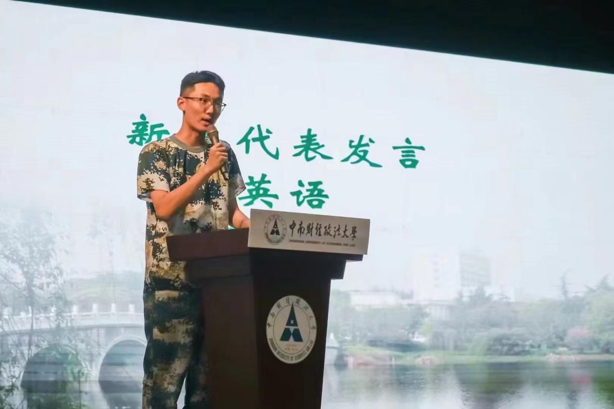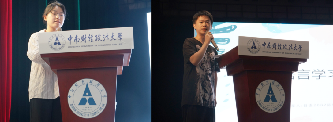 2020级陈锦洛作为非通用语种代表上台发言,他从学习主动性、学习方法、校园生活三个方面分享自己的经验。他向新生强调心态的重要性,希望师弟师妹们可以把高中时对大学的憧憬转化为主观能动性,并且就外语相关的“听、说、读、写、译、记”分享了自己的学习方法。