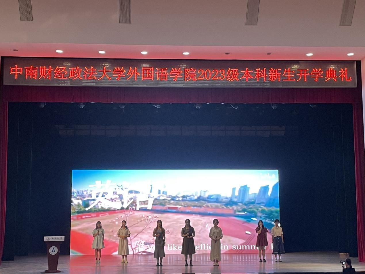 院网讯(图片:刘天琦、陈新蓉、张若然 文字:李涛 张若然)9月7日晚,外国语学院在首义会堂举行2023级本科新生开学典礼暨专业见面会,院长蔡圣勤,院党委书记陈亚奇,副院长阮全友、袁奇,院党委副书记余向阳、王芹,以及各专业老师代表,院党政办、学办老师出席典礼,新生家长和校友代表通过腾讯会议线上参加,典礼由陈亚奇主持。
