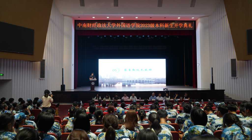 院长蔡圣勤教授代表学院致辞,他回顾学院与学校同频共振的成长史,介绍学院学科专业架构、师资力量、教学科研成果等并对同学们提出四点建议:一.充分认识大学生活的过渡性,顺利完成身份转变。二.充分认识外语专业和经法管专业的协调,稳定心态。三.培养多语能力,体现外语学子的特色和优势。四.遵循“知识能力性格”的进阶规律,充分利用学校、学院的资源,点滴积累,灿烂行千里。