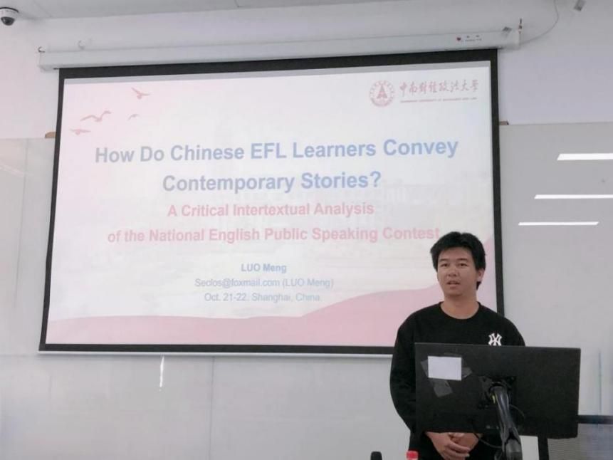 2022级研究生罗蒙以《How Do Chinese EFL Learners Convey Contemporary Stories? A Critical Intertextual Analysis of the National English Public Speaking Contest》为题,以“讲好中国故事”为出发点,通过互文性理论描写中国大学生讲好中国故事的叙事表征,丰富了互文性理论在语言学话语分析的研究,也为中国大学生讲好中国故事、传播好中国声音提供实践思路。