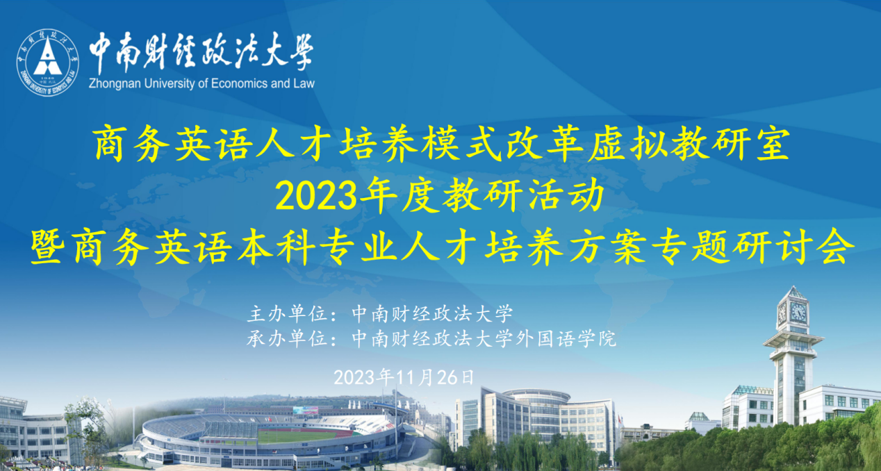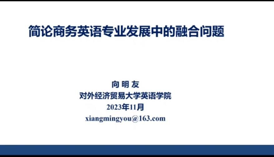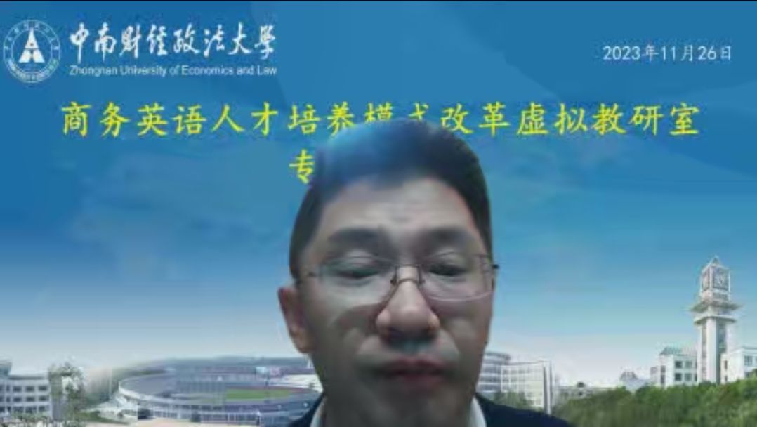 (通讯员 罗婧 李燕)中南财经政法大学外国语学院商务英语人才培养模式改革虚拟教研室2023年度教研活动暨商务英语本科专业人才培养方案专题研讨会于11月26日在线上举行。共有60多位来自国内多所高校的师生参与了此次虚拟教研室活动,有8位老师做了交流发言。