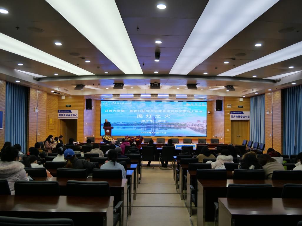 (通讯员 杨吉悦 陶欢雨)2023年12月14日下午,“文澜大讲堂”新时代研究生思政金课暨导学思政大讲堂在文澴楼同声传译会议中心举办。本次讲座以“提灯之火”为主题,邀请了外国语学院梁小华教授担任主讲人。讲座由学院党委书记陈亚奇主持,副院长袁奇、副书记王芹、学院导师代表和研究生辅导员出席讲座,2023级全体研究生到场聆听。