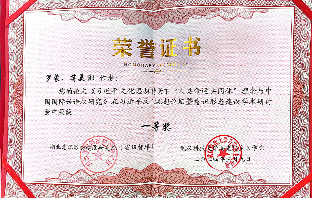 在学院副院长、导师阮全友教授的启发下,结合对“人类命运共同体”理念国际传播研究的科研兴趣与已有研究基础,我院2022级外国语言学及应用语言学研究生罗蒙和2020级商务英语专业本科生蒋美湘合著的论文《习近平文化思想背景下“人类命运共同体”理念与中国国际话语权研究》荣获会议一等奖。