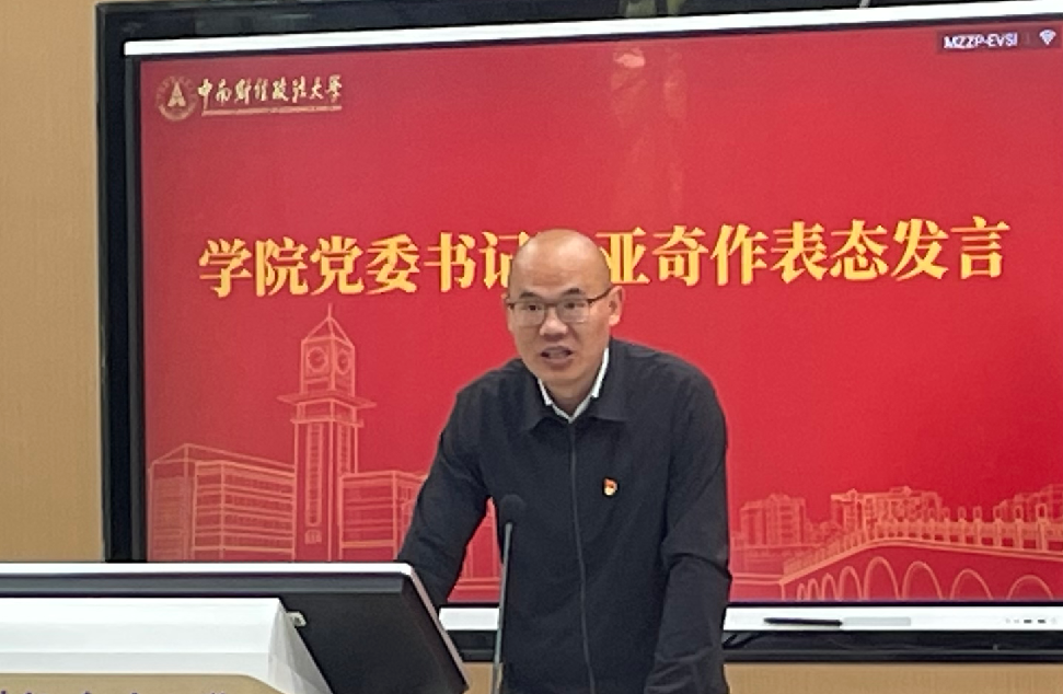 陈亚奇代表外国语学院党委和领导班子作表态发言。一是认真学习党中央关于加强全面从严治党和巡视巡察工作新要求,提高政治站位,加强对巡视工作认识,严肃认真对待,虚心接受巡察。二是严格遵守巡察工作纪律,服从巡察组工作安排,畅通反映问题渠道,积极支持配合巡察组各项工作。三是以高度的政治自觉,敢于接受批评和自我批评的勇气,绝不回避问题,积极主动落实整改责任,确保巡察整改取得成效。希望通过本次巡察,学院的政治生态更加风清气正,党的建设水平进一步增强,党政领导班子执政本领得到进一步提升,学院干事创业的氛围进一步和谐融洽,学院的发展更快更好。