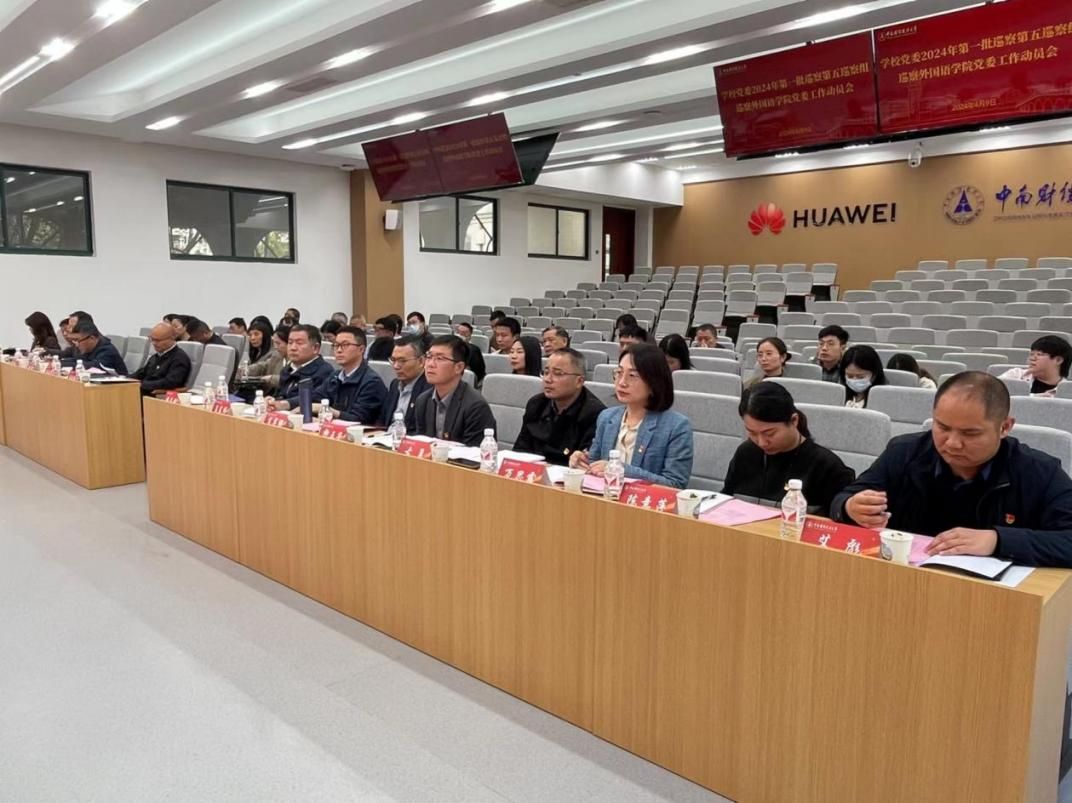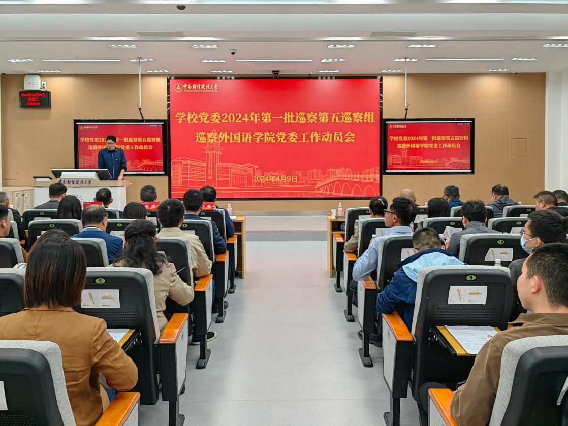 院网讯(通讯员 刘轩 牟芳 摄影 袁笑雨 彭心儀)根据校党委关于巡察工作的统一部署,4月9日下午,学校党委2024年第一批巡察第五巡察组巡察外国语学院党委工作动员会在文波智慧教室112召开。第五巡察组组长肖翠祥,校纪委副书记、党委巡察办主任张文剑,党委巡察办副主任夏东伟,师德师风专项巡察组副组长柳正华,第五巡察组副组长古勇、万思露,第五巡察组成员余利、胡瑢、陈意萍、艾彪,第六巡察组成员杨晨,学院党政领导班子全体成员、党委委员、纪委委员、全体党政管理人员、系部室主任、教工党支部书记、教师代表等50余人出席会议。院长蔡圣勤主持会议。