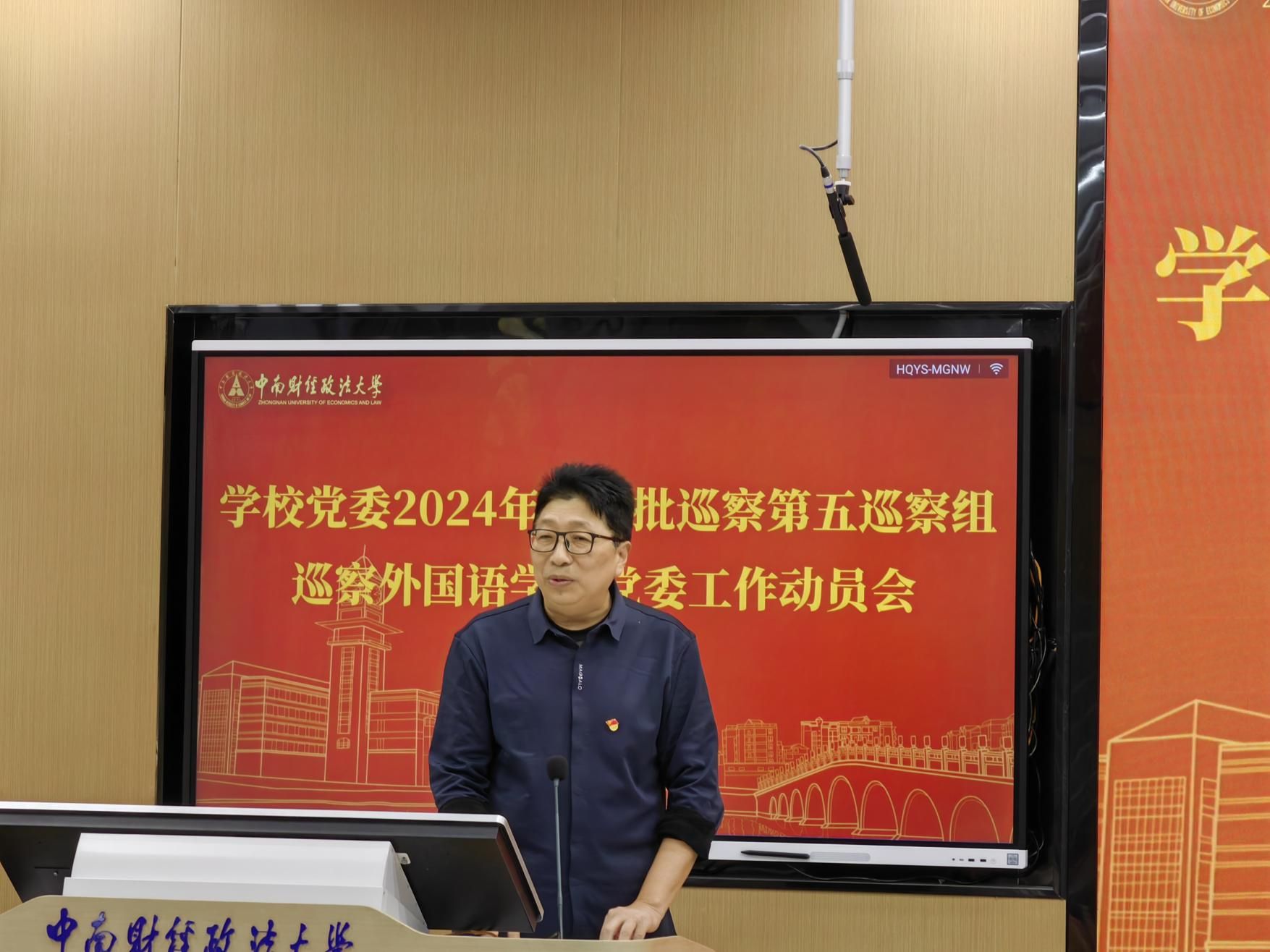 肖翠祥代表校党委第五巡察组通报巡察重点任务、总体安排和工作要求。一是巡察工作的重点任务。本次巡察将紧紧围绕“四个落实”重点,严格把握“四个对照”检查标准,切实紧盯四个重点任务,充分发挥巡视巡察在党的自我革命中的重要作用,坚定不移地把全面从严治党引向深入,为学校事业高质量发展提供坚强保证。二是巡察工作的总体安排。校党委第五巡察组即日起将对外国语学院党委开展为期10个工作日、四个阶段的集中驻点巡察工作。三是巡察工作的纪律要求。他强调,要把握好政治监督与业务监督,发现问题与解决问题,监督与治理这三对关系,有形有效开展好政治巡察工作。
