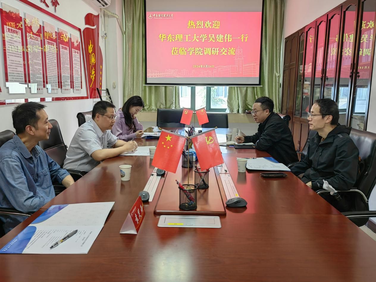 5月14日,华东理工大学外国语学院副院长吴建伟、副院长韦晓保一行来我院调研交流。学院副院长袁奇、文学教研室主任丁秉伟、研究生工作办公室主任张冉、研究生专职辅导员袁笑雨参加座谈交流。