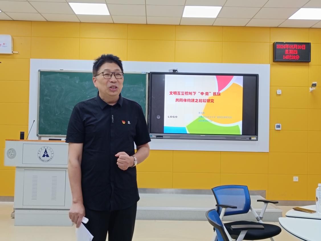 院网讯(通讯员:牟芳 图片:黄瑞洁)为深入贯彻落实党的二十大精神,推动学习贯彻习近平新时代中国特色社会主义思想进课堂。5月30日下午,院长蔡圣勤于文波智慧教室204讲授《文明互鉴领域下“中-南”民族共同体构建之比较研究》,本科和研究生三十名发展对象、学生工作办公室主任李涛参加学习。