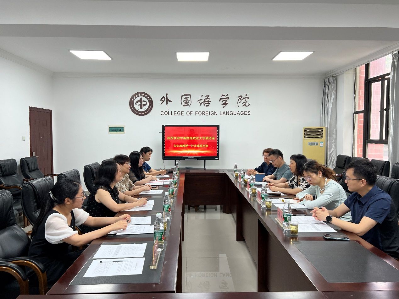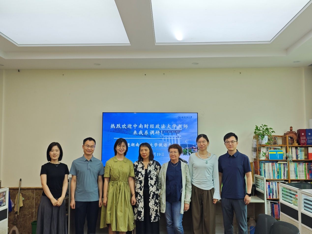 (通讯员 蒙曜登、刘早)6月19日,俄语教研室主任朱红琼教授、副主任周梦菡老师、外教ЛюдмилаИвановна、刘早副教授及蒙曜登副教授一行五人赴湖南师范大学、中南林业科技大学调研。