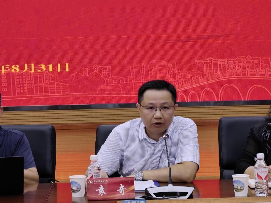 副院长袁奇介绍了本学期研究生教学工作、科研工作和国际化建设工作等相关安排,如研究生自命题题库更新、夏令营、科研项目申报等。