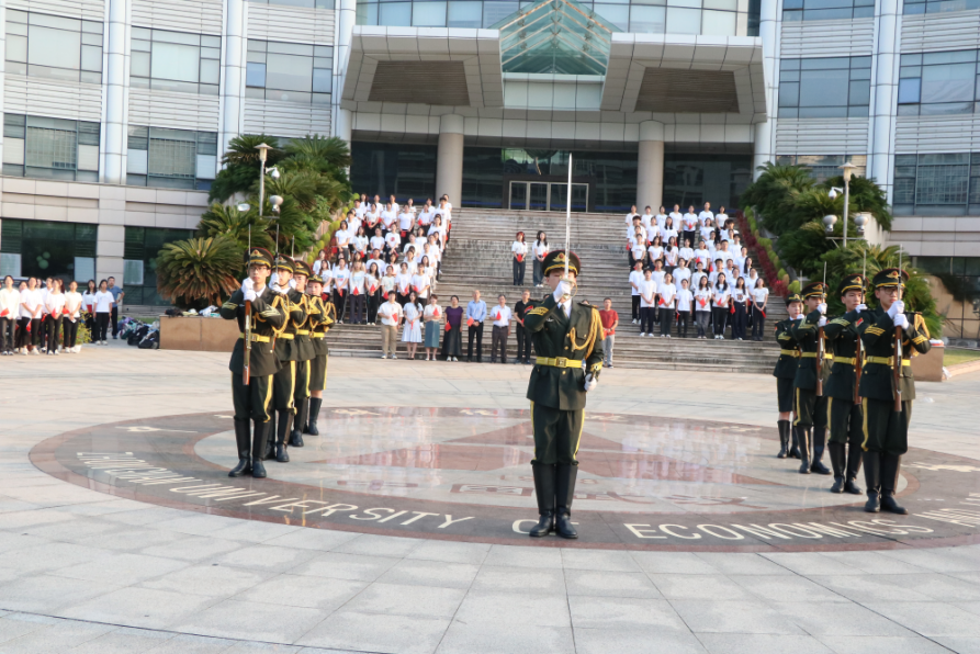 7点整,升旗仪式正式开始,国旗护卫队队员们步伐整齐、昂首挺胸护送五星红旗进场;全体人员唱国歌,向国旗行注目礼,鲜红的国旗伴随着嘹亮的歌声冉冉升起。