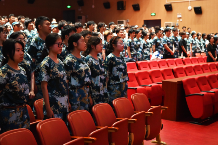 国歌唱毕,新生在陈亚奇的带领下歌唱校歌。