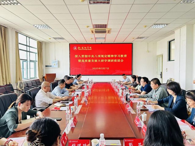 院网讯(通讯员:刘轩 左思语 刘心语)5月7日,学院深入贯彻中央八项规定精神学习教育暨高质量发展大研学专题座谈会在文波楼402会议室举行。校党委常委、副校长陈柏峰,学院领导班子、各系(部、室)主任、导师组组长、教授代表、青年教师代表、行政教辅代表、外籍教师代表和学生骨干代表参会,会议由院长蔡圣勤主持。