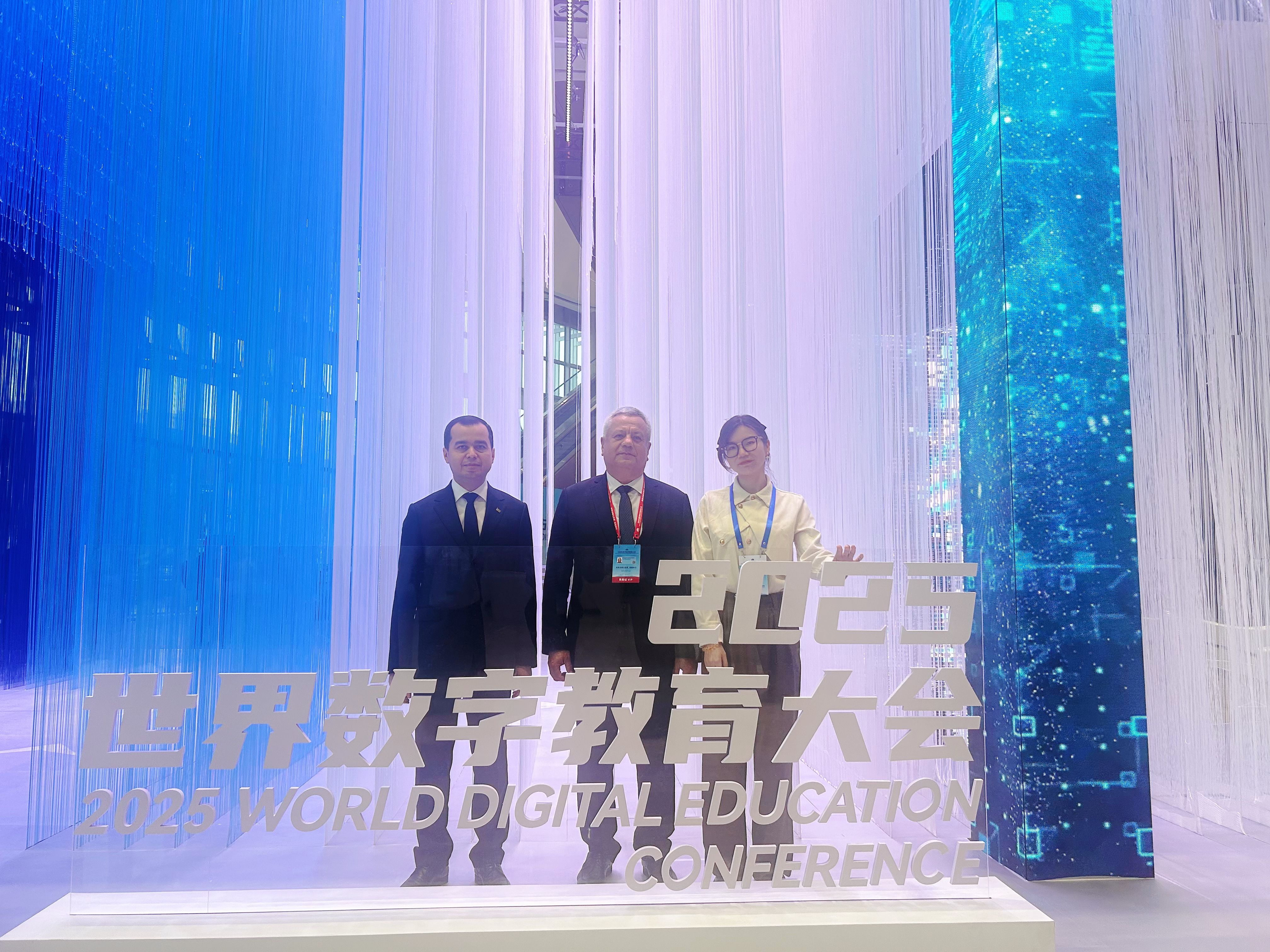 (通讯员于香玲、李乾铭、周梦菡)2025年5月14日至16日,由中华人民共和国教育部、中国联合国教科文组织全国委员会与湖北省人民政府共同主办的“2025世界数字教育大会”在湖北武汉隆重召开。本次大会以“教育发展与变革:智能时代”为主题,吸引了来自全球80余个国家和地区的政府要员、国际组织负责人、驻华使节和知名高校校长等共聚江城武汉,共同探讨数字教育面临的机遇与挑战,共同展望智能时代数字教育的广阔前景,取得了丰硕成果。我院俄语专业周梦菡副教授应邀为大会提供语言翻译服务,陪同土库曼斯坦教育部副部长亚历山大·阿曼诺夫先生出席开幕式及会议全程,助力深化中土教育交流合作。