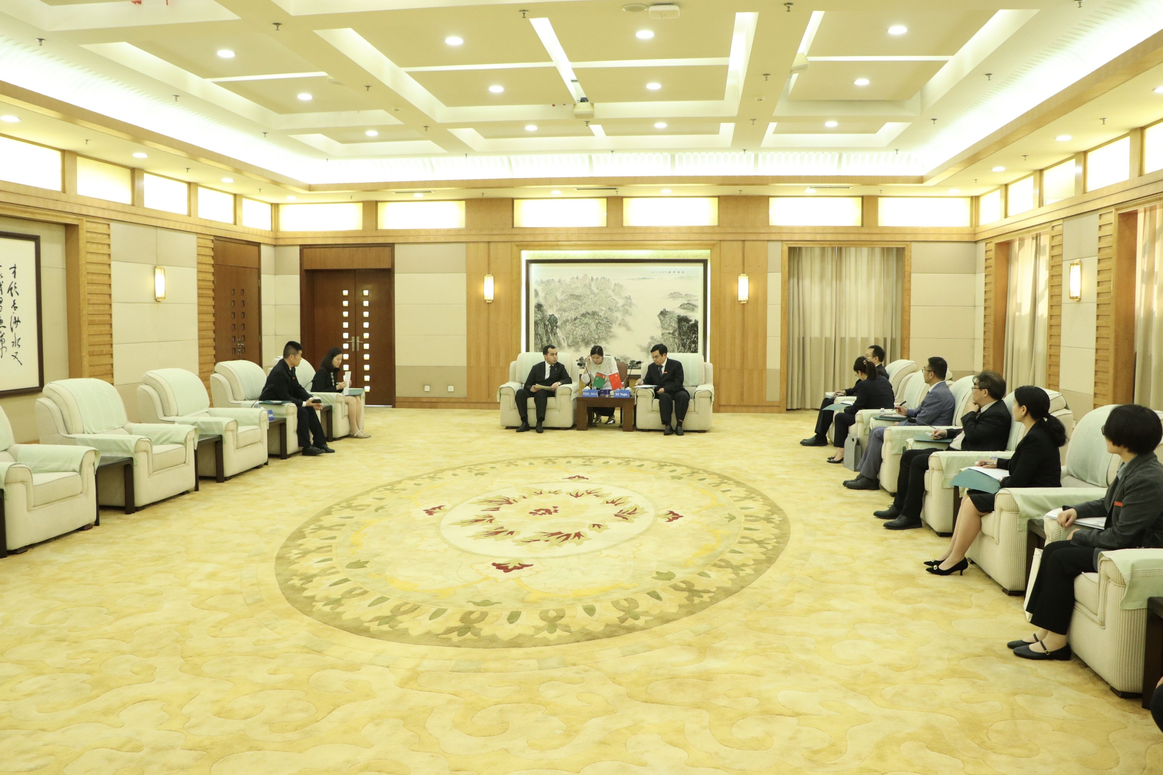 大会议程结束后,周梦菡老师还陪同阿曼诺夫副部长访问了中南民族大学,并为副部长先生与中南民族大学校党委书记徐业勤先生、副校长马玉堂先生的交流会谈担任现场翻译。阿曼诺夫先生表示,期待与我国高校在师生互访、国际中文教育课程共建等领域开展务实合作。