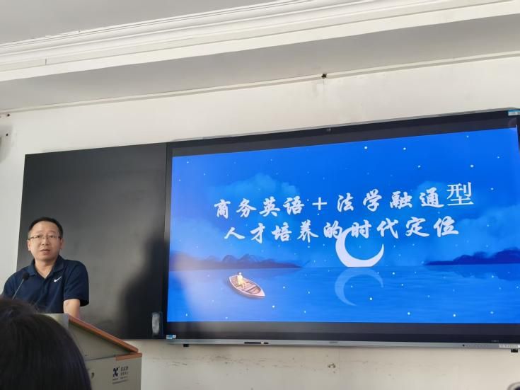 会议最后由阮全友老师总结发言,他首先对分享经验的大四学生表示欢迎与感谢并指出商法专业的复合背景在就业市场具有独特优势。他结合国家发展战略、社会现实需要以及相关案例,学科融合和语言文化学习的重要性,鼓励同学们珍惜大学时光,平衡好专业课程与实践拓展,勇于迎接挑战。