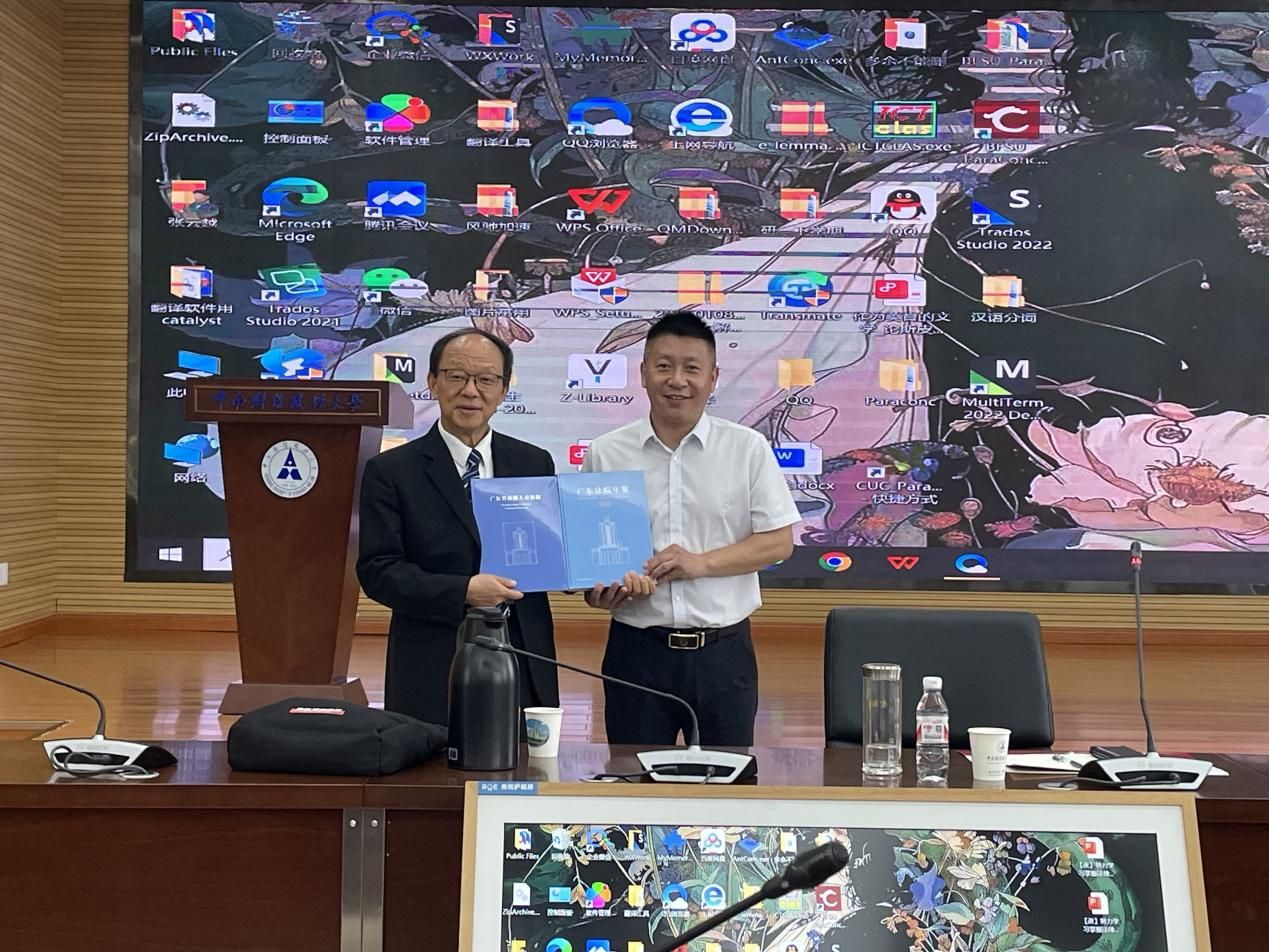 讲座结束后,屈伸法官将自己参与编辑并负责英文译审的《广东法院年鉴》(2024版)和《广东省高级人民法院》(双语版)捐赠给母校。他深情寄语同学们,希望大家能够珍惜学习机会,努力提升法律英语能力,为助力涉外法治建设贡献自己的力量。