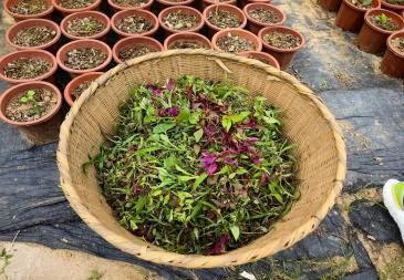 除草过程中,育苗老师现场指导,特别提醒同学们注意清除盆壁边缘等容易被忽略区域的弱小杂草。“除杂草要趁早、趁快,不能轻视这些看似无害的小草,它们很快就会长大,影响菊苗生长。”老师的讲解使同学们对除草工作有了更深入的认识,操作也更为细致。