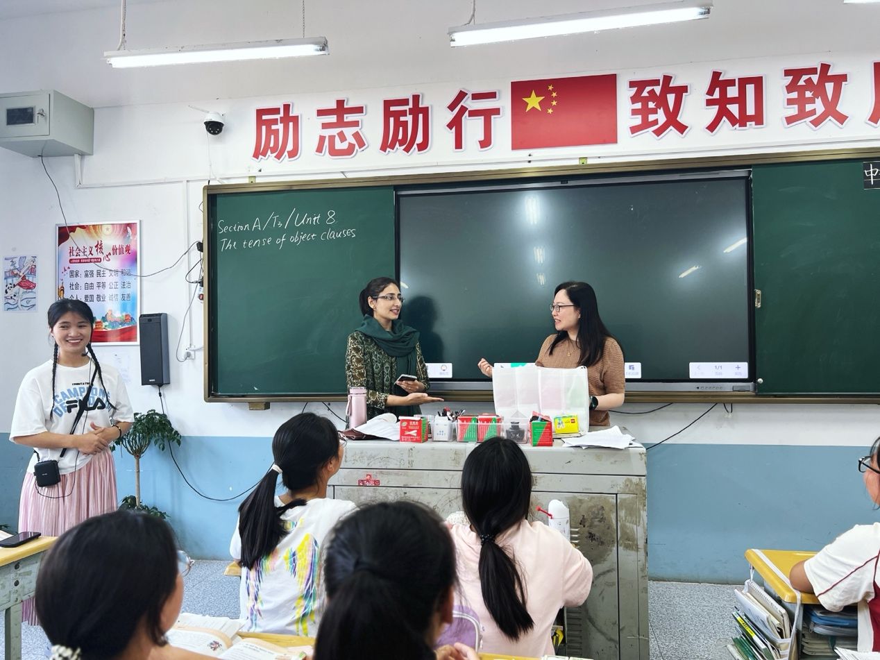 6月13日上午9时,盐津一中八年级教室传来阵阵欢声笑语。莎拉老师以纯正的发音和生动的肢体语言,与学生展开情景式口语互动。“Guess the meaning of this word?”她通过角色扮演、小组竞赛等方式,迅速点燃课堂热情。同时也激发了学生开口讲英语的兴趣。课后,莎拉老师被学生团团围住,他们争先恐后的与这位“老外”攀谈起来。