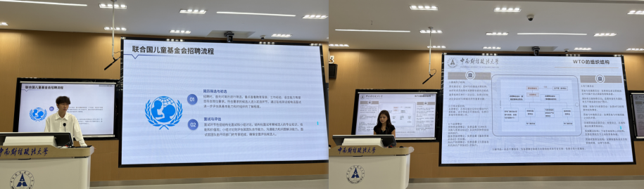 五支参赛团队围绕“国际组织解码”“个人发展蓝图设计”“跨文化冲突应对”等课题展开精彩展示。同学们通过扎实的研究、生动的案例和流畅的表达,展现了中南大学子的国际化素养与团队协作能力。每组限时15分钟的展示环节紧张有序,现场掌声不断。