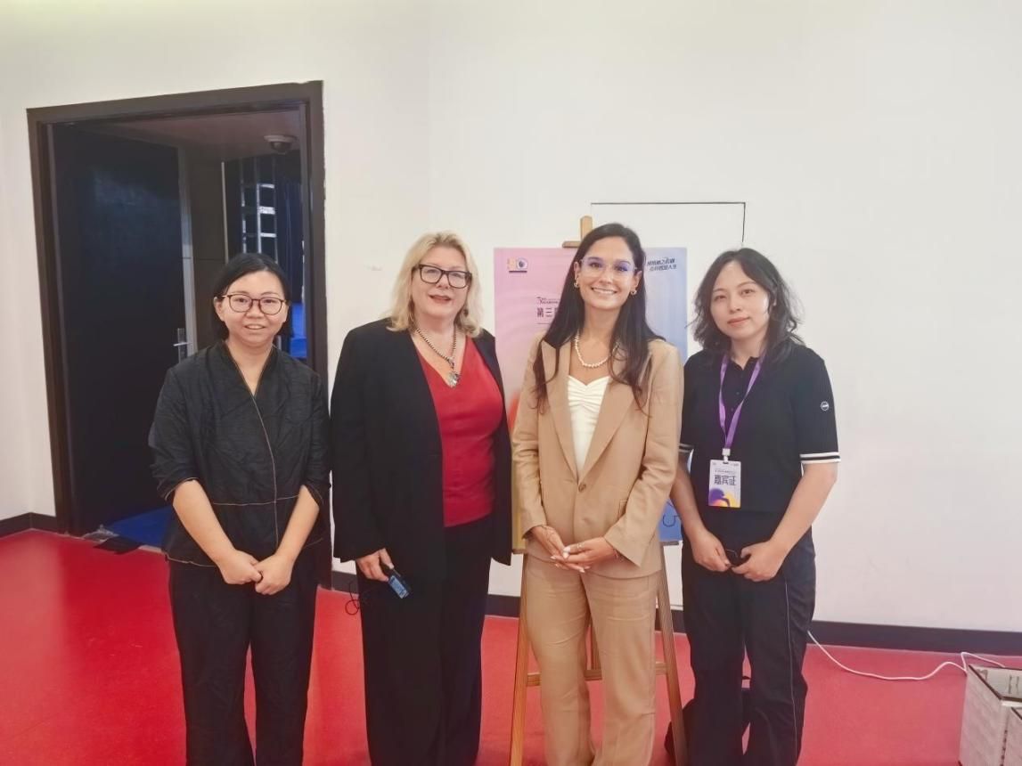 从左到右:吴于勤老师、索菲亚大学校长Carol、联合国青年总部官员Maria、贾文老师