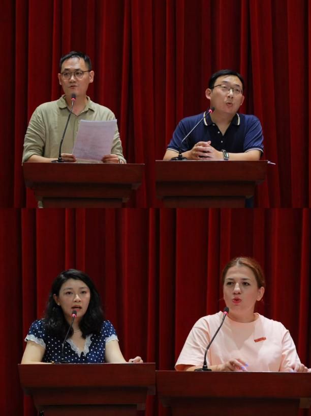 随后,各专业教师代表依次介绍专业特色与培养方案。英语语言文学系曹宇老师介绍,该系设有语言文学、翻译两大核心方向,毕业生就业市场认可度高,今年新增英语+法学双学位实验班。应用英语系田川老师指出,商务英语专业作为国家级一流本科专业建设点,聚焦六大核心能力培养,同样开设商务英语+法学双学位实验班,毕业生升学就业表现突出。法语专业教研室孟念慈老师强调法语专业师资队伍科研教学能力强,学生在各类专业赛事中屡获佳绩,就业升学前景广阔,今年同样开设法语+法学双学位实验班。俄语专业教研室休娃老师介绍俄语专业今年新增俄语+法学双学位实验班,努力提升学生综合竞争力,并结合自身在多语种学习与跨文化交流中的经历,鼓励同学们学习多种语言。