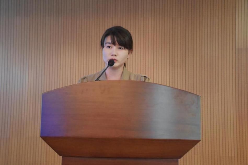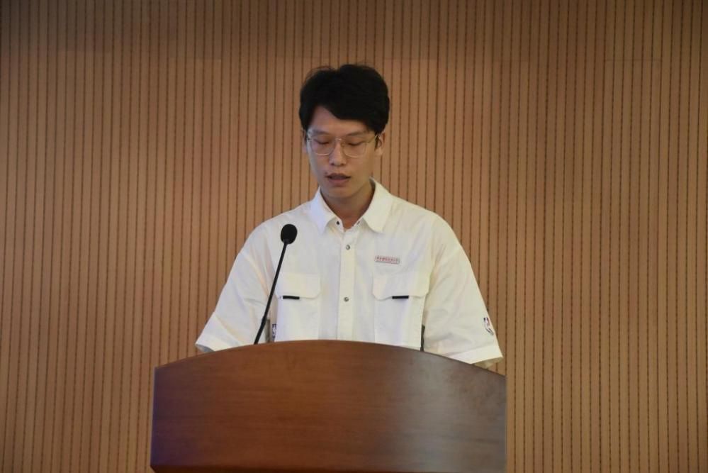 任飞羽在发言中回顾了自己作为中南大外院本科毕业生对母校的深厚情感。他认为研究生阶段不仅是学术的深化,更是人格与能力的锤炼。此外,他和大家分享了自己关于未来学习的思考,并提出研究生阶段应涵养学术品性,播撒梦想,致力于成为中国文化的诠释者和传播者。