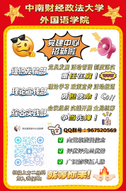 外国语学院党建中心期待与你一起,用语言搭建信仰之桥,用行动诠释青年担当,让青春在党旗下绽放绚丽之花!