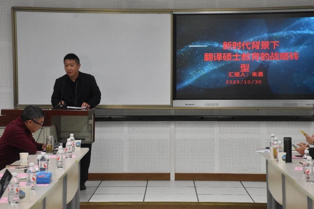 朱勇副教授探讨了新时代背景下翻译硕士教育的战略转型,他指出,为应对翻译行业新趋势,高校须革新培养模式,借鉴北外高翻学院、DTI培养模式的先进经验。转型核心在于促进人才与技术的深度融合,培养符合时代需求的译者。