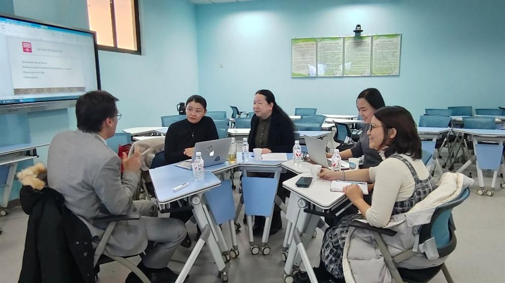 孟念慈介绍了我校法语专业的发展现状,重点介绍专业教师团队的教学科研能力、学生规模与层次(本科为主)、优质教学质量(含课程体系、实践教学成果)及近年来优秀学生留学、竞赛获奖等典型案例;卢小梅回顾了我校与法国高校长达 20 年的合作历程,梳理了过往中法交换生项目取得的丰硕成果,明确表达了与图卢兹一大开展深度合作的殷切期望与坚定意愿。
