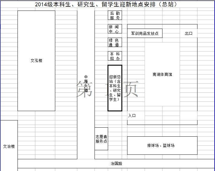 4. 2014年9月12日上午8点整在南湖校区体育中心举行2014级新生开学典礼。 请同学们务必在7点45分前在体育中心集合准备入场。